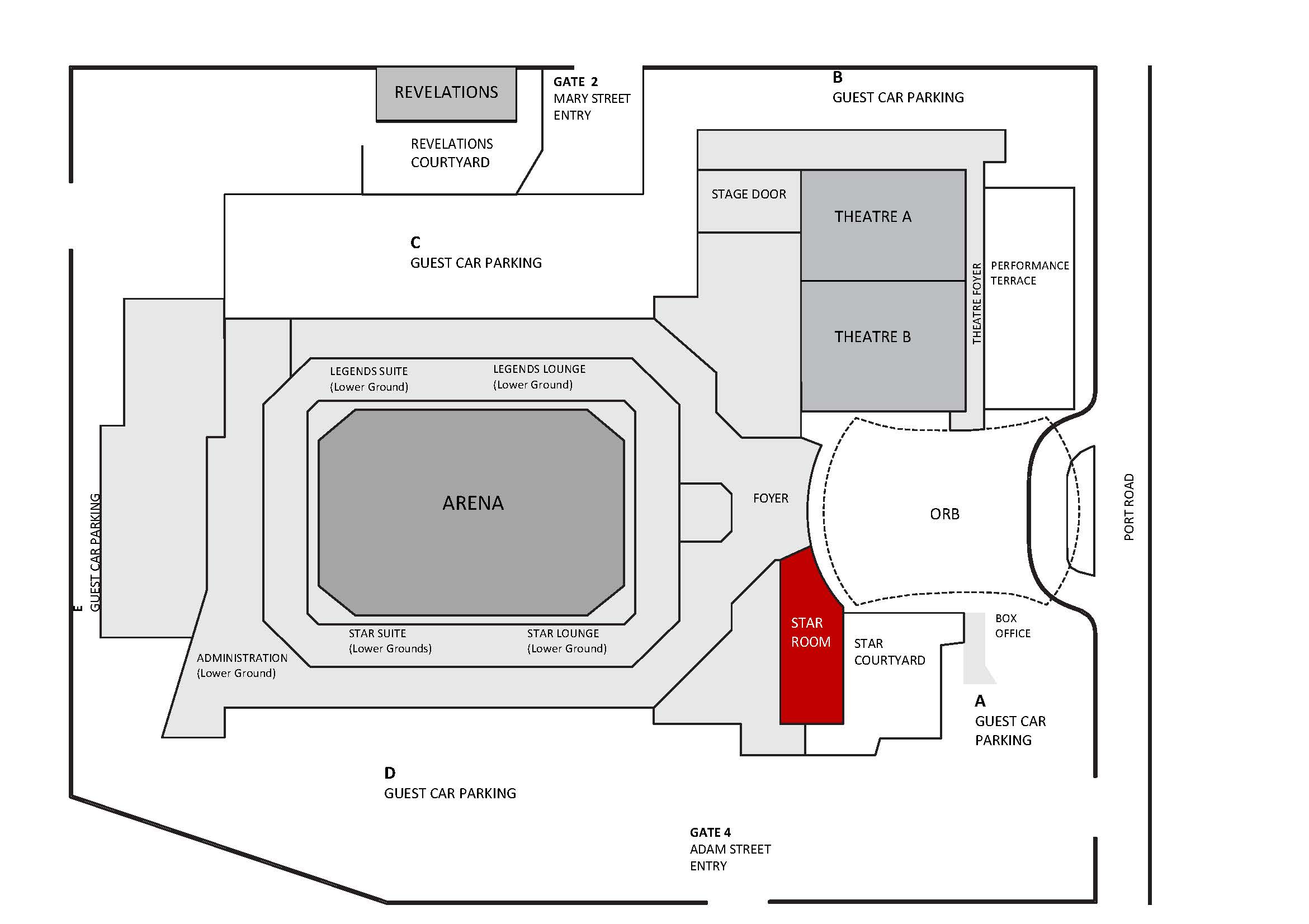 Overlooking a large courtyard and the Centre’s spectacular Orb entry, the Star Room provides extensive natural light via large windows, and offers great versatility for more intimate gatherings.