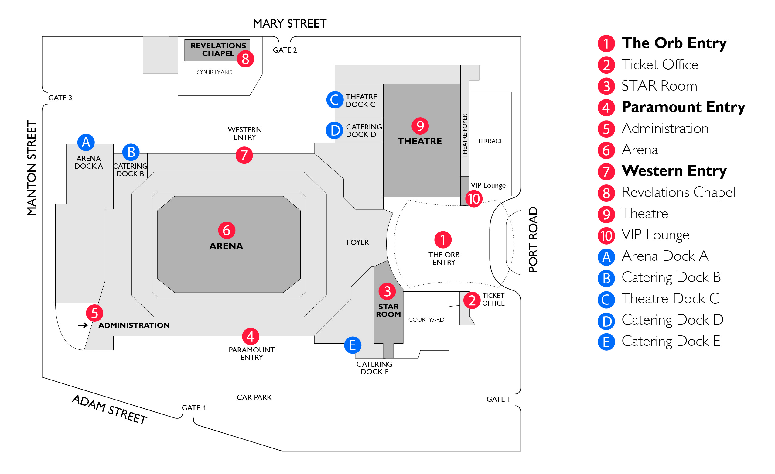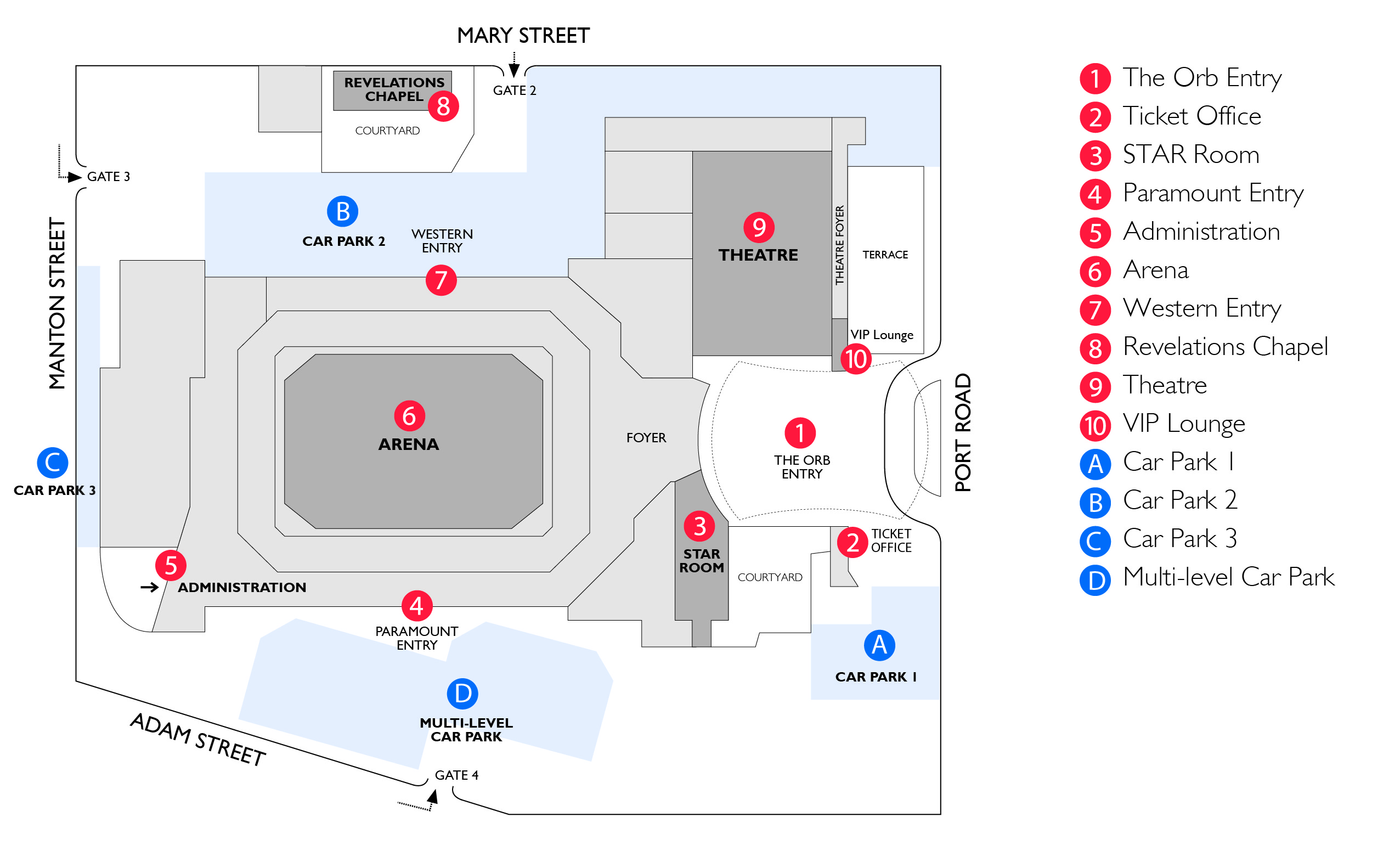 If you are driving to the Adelaide Entertainment Centre, we offer more than 1,400 onsite car park spaces. Entry/exit to our car parks is via Mary Street, Manton Street or Adam Street only.